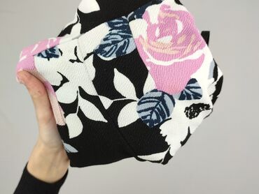 - Wzór: duże kwiaty (róże i liście) w odcieniach różu, bieli i granatu na czarnym tle