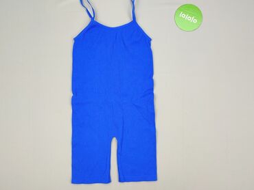 Kombinezon damski w kolorze niebieskim, wykonany z lekkiego materiału przypominającego jeans. Model ten posiada cienkie ramiączka, które można regulować, oraz elastyczną talię, zapewniającą wygodne...Stan: