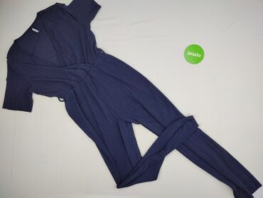 Granatowy kombinezon damski - Fason: jednoczęściowy, z elastycznym ściągaczem w pasie - Rękawy: luźne, krótkie (kimono) - Nogawki: długie, proste - Dekolt: okrągły - Rozmiar: S (na metce „S”) - Ma...