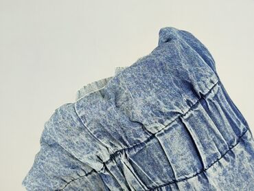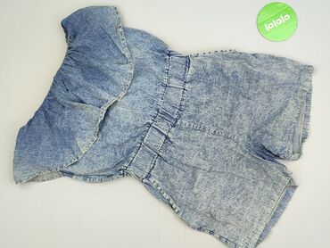 Jeansowy kombinezon damski (playsuit) z krótkimi spodenkami. - Materiał: lekki denim w odcieniu granatowym - Fason: bez ramiączek, góra z szeroką, elastyczną gumką (smock) zapewniającą dobre trzym...