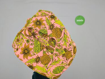 - Wzór: gęsty, roślinno‑owocowy (kwiaty, liście, ananasy) w odcieniach zieleni i brązu na różowym tle