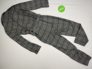Kombinezon damski PRIMARK na ramiączkach - Krój: jednoczęściowy, góra dopasowana, nogawki proste/szerokie 7/8–ankle length - Wzór: krata w odcieniach szarości z delikatnymi żółtymi liniami (mikro ...