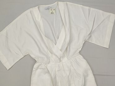 Biały, letni kombinezon damski Miss Selfridge. - Rozmiar: EUR 36 / UK 8 / US 4 (na metce) - Fason: krótkie nogawki, odcięcie i gumka w talii, lekko marszczona góra - Ramiączka i wykończenia z ażuro...