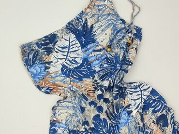 Bershka – kwiecisty kombinezon damski - Model: lekkie, krótkie spodenki z górą na ramiączkach - Wzór: intensywny, wielobarwny print w kwiaty (róże, żółcie, zielenie, błękity) - Krój: dopasowana gó...