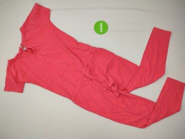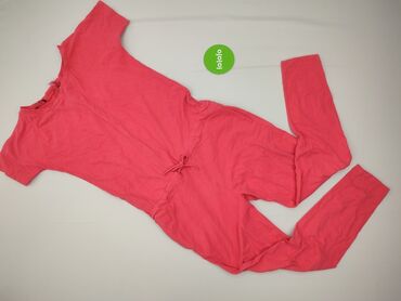 Różowy kombinezon damski MEGI, rozmiar S–M - Fason: kopertowy dekolt V, krótkie rękawy, długa nogawka - Talia podkreślona szerokim pasem i marszczeniem; z przodu dekoracyjny guziczek przy kieszeni...