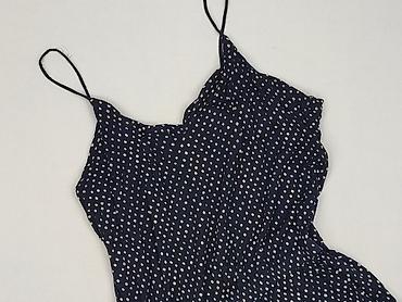 Kombinezon damski na ramiączkach – granatowy w drobny, biały wzór.