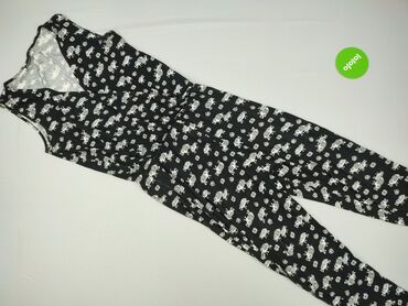 Kombinezon damski Janina - Fason: bez rękawów, długie nogawki zwężane ku dołowi; lekko zbluzowana góra z zakładkami/przesunięciem na przodzie. - Wzór: czarno‑grafitowe tło z drobnym, białym printe...