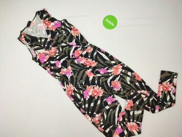 Kombinezon damski Janina - Rozmiar: 44 - Fason: bez rękawów, długie nogawki, kopertowy dekolt z zakładką; w pasie lekkie marszczenie podkreślające talię - Wzór: kwiatowy i roślinny na czarnym tle ...