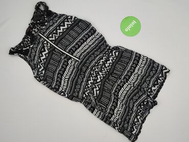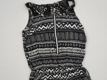 Kombinezon damski na ramiączkach S/M - Fason: krótki kombinezon (shorts), gumka w pasie podkreślająca talię - Kolor: czarny z drobnym, jasnym nadrukiem na górze; dół zdobiony bogatym, kwiatowym pr...