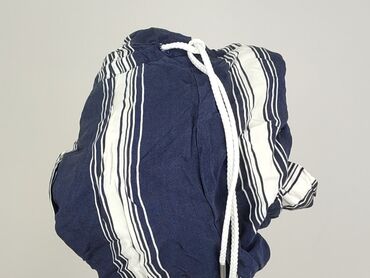 Granatowy kombinezon damski w pionowe białe paski - Fason: jednoczęściowy kombinezon z krótkimi nogawkami (shorts), luźny dół z lekkim rozkloszowaniem - Dekolt: halter/wiązany przy szyi, cienkie r...