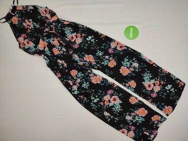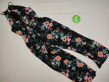 Kombinezon damski PRIMARK - Fason: długie nogawki, góra na cienkich ramiączkach - Dekolt: w kształcie litery V z przodu i z tyłu - Print: tropikalny, wielokolorowe kwiaty i liście na czarnym tle (...