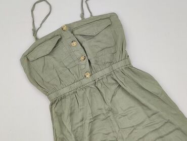 Kombinezon damski z krótkimi nogawkami - Kolor: khaki/oliwkowy - Krój: koszulowy, zapinany z przodu na guziki - Rękawy: krótkie - Talia: elastyczna gumka - Element dekoracyjny: naszywka z kolorowy...