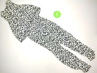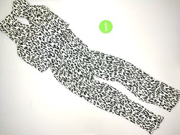 Kombinezon damski w rozmiarze S, o luźnym kroju, z krótkimi nogawkami i szerokimi ramiączkami. Wykonany z lekkiego materiału w kolorze czarnym z tropikalnym wzorem zielonych liści. Posiada wiązanie...