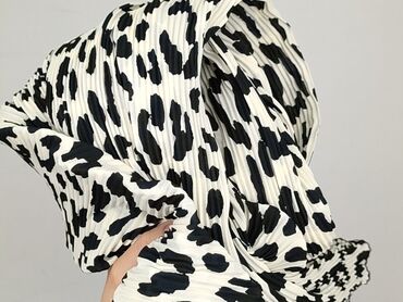 Damskie spodnie w panterkę - Krój: zwiewne, z lekko zwężanymi nogawkami; materiał marszczony gumką w pasie i przy kostkach, co zapewnia wygodne dopasowanie. - Wzór: czarno-białe cętki w stylu anim...