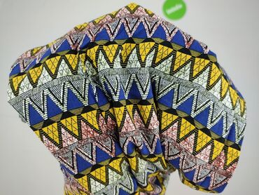 Kombinezon damski z kolorowym, geometrycznym wzorem, idealny na lato. Posiada regulowane ramiączka i elastyczną talię, zapewniającą komfort noszenia. Dół kombinezonu wykończony jest czarnymi pompon...