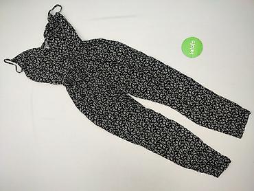 Kombinezon damski na ramiączkach S/M - Fason: krótki kombinezon (shorts), gumka w pasie podkreślająca talię - Kolor: czarny z drobnym, jasnym nadrukiem na górze; dół zdobiony bogatym, kwiatowym pr...