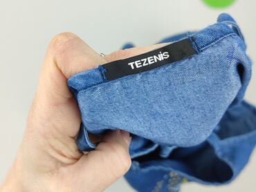 Jeansowy kombinezon damski na ramiączkach – DENIM Co. - Kolor: jasny denim z przetarciami - Krój: jednoczęściowy shortsowy (krótkie nogawki), odcięcie w pasie z lekkim marszczeniem - Dekolt: półok...