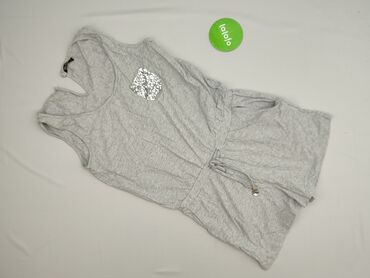 Szary kombinezon damski Esmara, rozmiar XS (EU/DE/GB/IE XS 32/34, FR XS 34/36). - Fason: krótki kombinezon z krótkim rękawem i krótkimi nogawkami. - Dekolt: okrągły z ozdobnym wycięciem i wiązani...