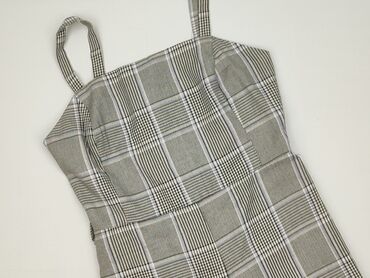 Kombinezon damski PRIMARK na ramiączkach - Krój: jednoczęściowy, góra dopasowana, nogawki proste/szerokie 7/8–ankle length - Wzór: krata w odcieniach szarości z delikatnymi żółtymi liniami (mikro ...