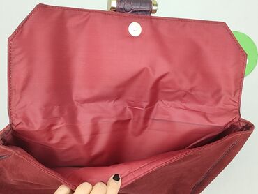 Fioletowa kopertówka damska - Materiał: zamsz syntetyczny na froncie i tyle, błyszczące wstawki z lakierowanej skóry/eko‑skóry - Kolor: głęboki fiolet/śliwka, metalowe elementy w kolorze srebra - ...