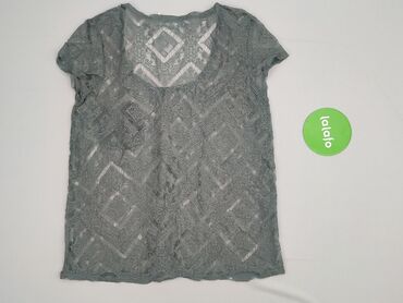 Ażurowa bluzka damska z krótkim rękawem - Kolor: grafitowy/ciemnoszary - Rozmiar z metki: L - Wykonanie: zewnętrzna warstwa 100% bawełna (kwiatowy, koronkowy wzór), wewnętrzna podszewka 100% wisko...