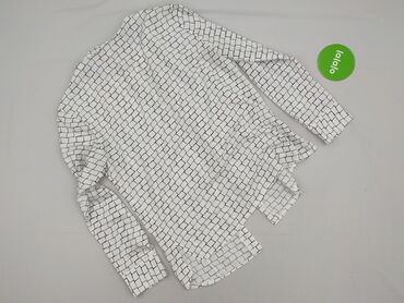 Koszula damska w geometryczny wzór - Kolor: biały w czarne, nieregularne linie (efekt „sketch/geometry”) - Fason: koszulowy, dłuższy tył (lekko zaokrąglony dół) - Zapięcie: na guziki z przodu - Rę...