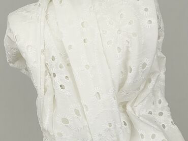 Biała bluzka koszulowa z krótkim rękawem i ażurowymi wstawkami - Krój: luźny, zapinana na rząd guzików z przodu; krótkie rozcięcia po bokach u dołu. - Dekolt/kołnierz: ozdobny kołnierz z ażurową k...