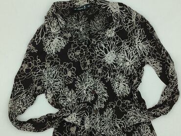Koszula damska Bershka, rozmiar L. - Fason: z kołnierzykiem, długi rękaw zapinany na mankiet. - Zapięcie: zamek błyskawiczny z tyłu. - Kolorystyka i wzór: połączenie czerni z barokowym printem w o...