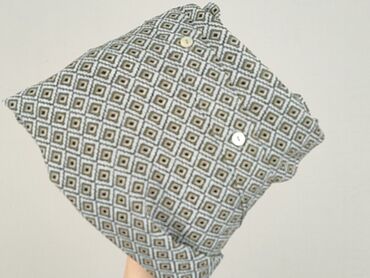- Wzór: drobna geometryczna kratka/romby w odcieniach szarości, oliwki i granatu
