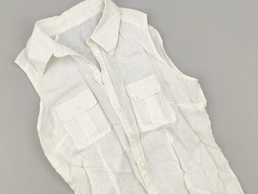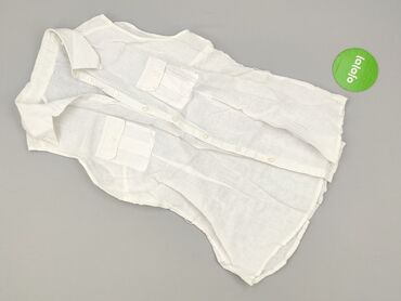 Biała damska koszula bez rękawów - Fason: bez rękawów, z klasycznym kołnierzem - Zapięcie: na guziki z przodu - Tkanina: lekka, półprzezroczysta, o delikatnej kreszowanej (marszczonej) strukturze ...