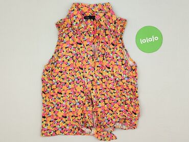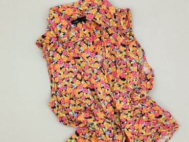 Koszula bez rękawów Sinsay - Rozmiar: XS (z metki) - Krój: bez rękawów, kołnierzyk, zapięcie na guziki z przodu - Wzór: gęsty, wielobarwny motyw kwiatowy (róż, pomarańcz, żółty, limonkowy, fiolet,...