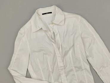 Koszula damska z długim rękawem, biała, 100% bawełna. - Rozmiar z metki: EU 42 / US 12 (CN 170/96A, MX 12) - Fason: przedłużany dół (zaokrąglony), zapięcie na guziki z przodu - Kołnierz: stójka - ...