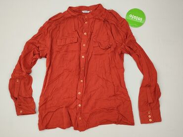 Koszula damska RESERVED - Model: koszula z krótkim rękawem (opadające rękawki), zapięcie na guziki z przodu - Kolor: intensywna rdzawo‑pomarańczowa (ceglasty) - Fason: luźny, lekko wydłużony tył; ...