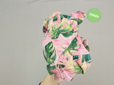 - Wzór: tropikalny print z liśćmi (monstera, palmy) w odcieniach zieleni, żółci i różu na różowym tle