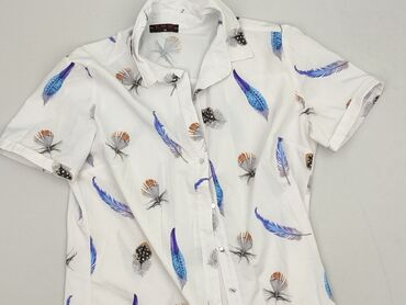 Koszula damska Esmara - Kolor: biała z czarnym, drobnym printem jaskółek na całej powierzchni - Krój: taliowany, zapinana na guziki z przodu - Rękaw: długi, mankiety zapinane na guziki - Kołnierz:...