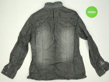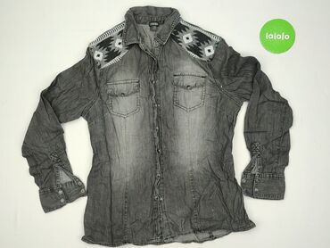 Koszula damska ESMARA - Model: koszula z długim rękawem, fason koszulowy z kołnierzykiem - Kolor: szary/denim light grey z kontrastowymi przeszyciami - Zapięcie: rząd czarnych napów (zatrzaski) na...