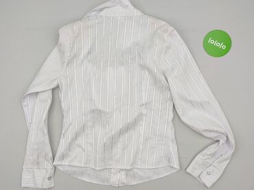 Biała bluzka koszulowa PALEX - Krój: krótki, lekko taliowany, z zaokrąglonym dołem - Dekolt: okrągły - Rękaw: krótki - Zapięcie: rząd oblekanych materiałem guzików z przodu - Tkanina: lekko prześw...Stan: