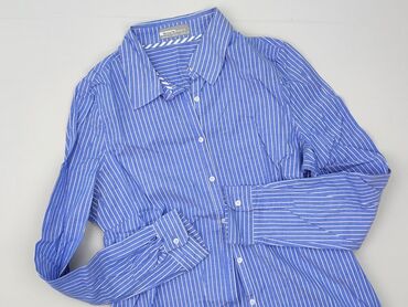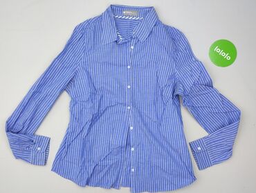 Koszula damska w paski - Krój: klasyczna koszula zapinana na guziki z kołnierzykiem, długie rękawy z mankietami na guziki - Wzór: drobne pionowe paski w kolorze błękitno-białym - Rozmiar z metki: ...