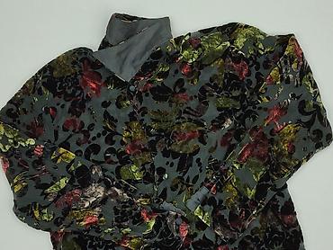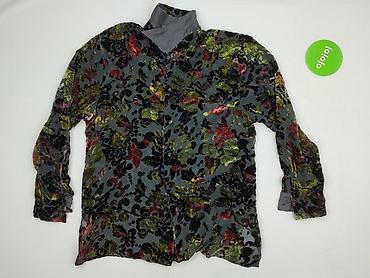 Damska koszula z długim rękawem, rozmiar M. Czarna baza z efektownym, wielobarwnym nadrukiem kwiatowym rozmieszczonym z przodu, na rękawach i z tyłu. Klasyczny kołnierzyk, zapięcie na czarne guziki...