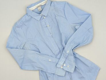 Koszula damska H&M - Model: klasyczna koszula w drobne biało‑niebieskie paski - Kontrastowy, biały kołnierzyk i mankiety - Zapięcie na guziki z przodu, długi rękaw z mankietem na guziki - Taliowan...