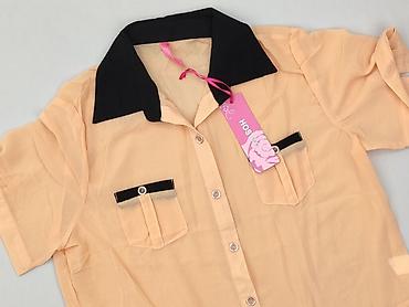 Koszula damska RESERVED - Model: koszula z krótkim rękawem (opadające rękawki), zapięcie na guziki z przodu - Kolor: intensywna rdzawo‑pomarańczowa (ceglasty) - Fason: luźny, lekko wydłużony tył; ...