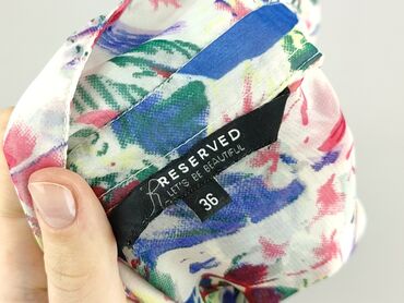 Bluzka damska Reserved - Marka: Reserved - Rozmiar: EU 36 (UK 8) - Krój: bez rękawów, z delikatną stójką/kołnierzykiem i krótką listwą guzikową z przodu - Wzór: kwiatowy na jasnoróżowym tle - Mate...