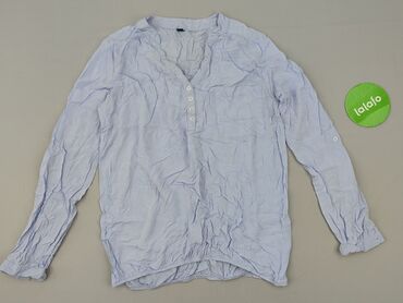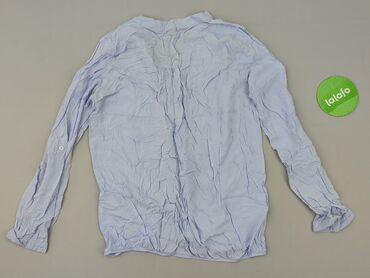 Lekka koszula damska z długim rękawem, w kolorze jasnoniebieskim. - Fason: luźny, z zaokrąglonym dołem - Dekolt: V z krótką plisą i zapięciem na 3 guziki - Rękawy: długie z mankietami zapinanymi n...Stan: