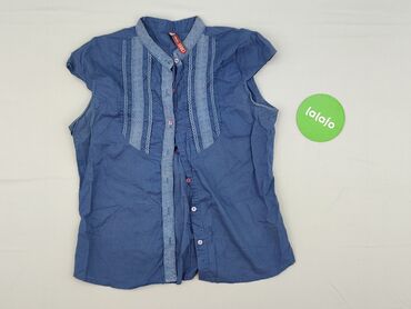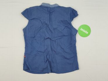Koszula damska Carry Young, rozmiar L - Fason: koszula z kołnierzykiem, krótki rękaw - Zapięcie: na guziki z przodu - Wzór: pionowe paski w odcieniach niebieskiego i bieli - Kieszenie: dwie kiesze...