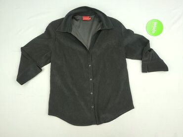 Szara koszula damska z długim rękawem, rozmiar M. - Fason koszulowy, zapinana z przodu na rząd białych guzików - Długi rękaw z mankietem; możliwość podwinięcia - Klasyczny kołnierzyk - Delikatna k...
