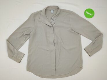Damska koszula H&M - Rozmiar: EU 34 (US 2, CA 2, CN 160/80A, MX 2) – metka widoczna na zdjęciu - Kolor: jasny beż/taupe - Materiał: 100% poliester - Krój: przedłużony, lekko zaokrąglony dół - Zapi...