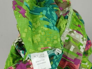 Długi rękawKoszula damska Wo.La Fashion z długim rękawem, wykonana z mieszanki bawełny i spandexu, co zapewnia komfort noszenia i lekko elastyczne dopasowanie. Wyróżnia się wielokolorowym, abstrakcyjnym wzorem, w którym dominują odcienie zieleni, różu, brązu i bieli. Posiada kołnierzyk typu stójka i zapięcie na guziki, a także dwie kieszenie na piersi. Idealna do casualowych stylizacji, na co dzień.