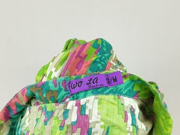 Damska koszula z krótkim rękawem, wzór artystyczny - Fason: zapinana na guziki z przodu, kołnierzyk, krótkie rękawy z delikatnym marszczeniem - Materiał: lekka, pofałdowana tkanina typu crinkle (n...