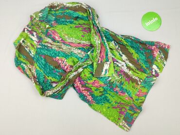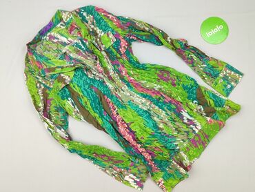 Koszula damska z długim rękawem, zapinana na guziki. Wykonana z lekkiej, cienkiej tkaniny. Wyrazisty, geometryczny wzór w liście/łezki w kolorach zielonym, różowym, brązowym i ecru. Klasyczny kołni...