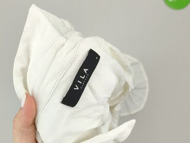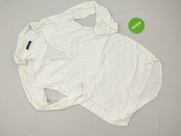 Biała koszula damska z krótkim rękawem - Materiał: lekka, przewiewna tkanina przypominająca len/bawełnę - Krój: luźny, lekko pudełkowy; obniżona linia ramion; zaokrąglony dół - Zapięcie: pełna lis...
